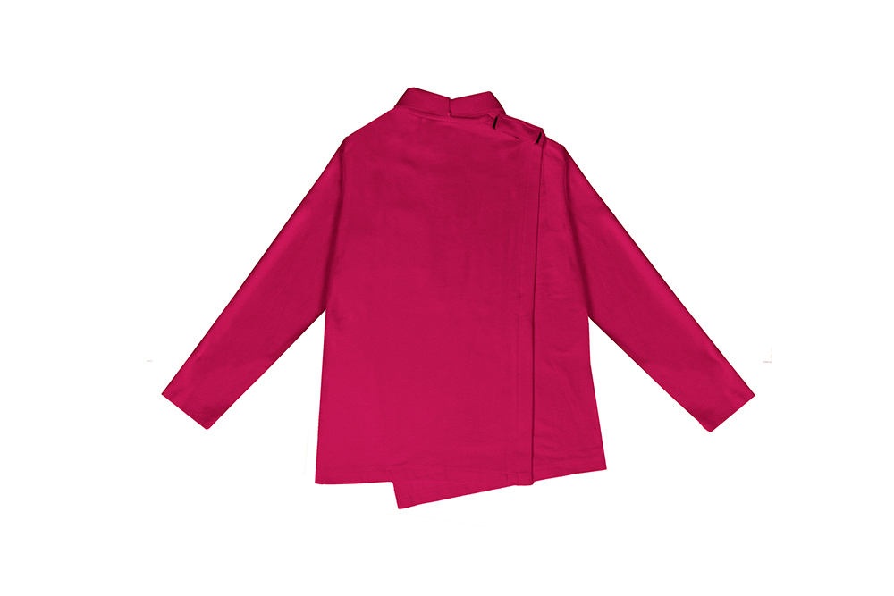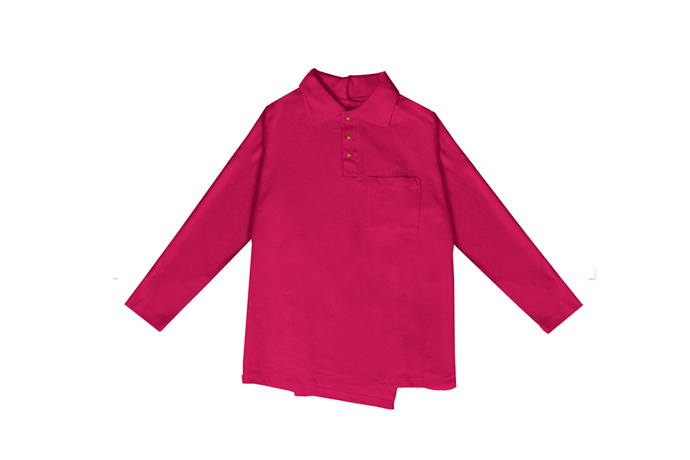 Camisa Polo, manga larga, que se cierra con broches a presión por la espalda.