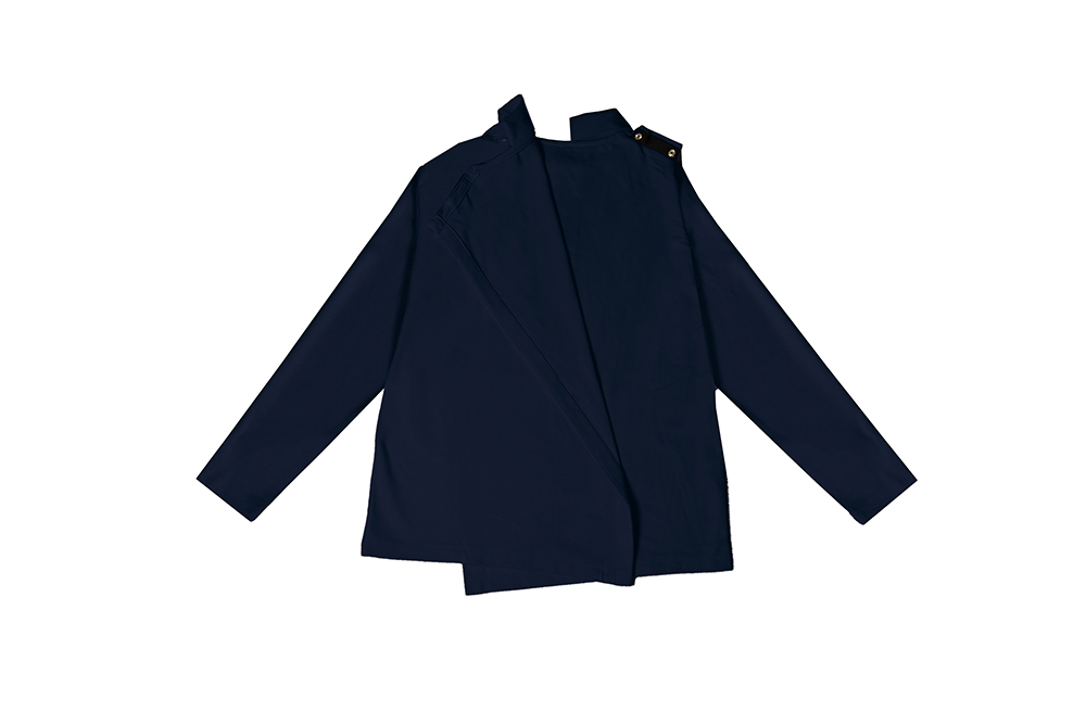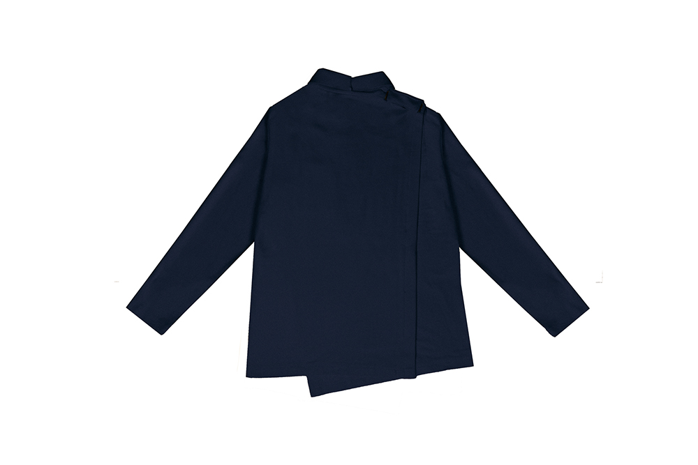 Camisa Polo, manga larga, que se cierra con broches a presión por la espalda.