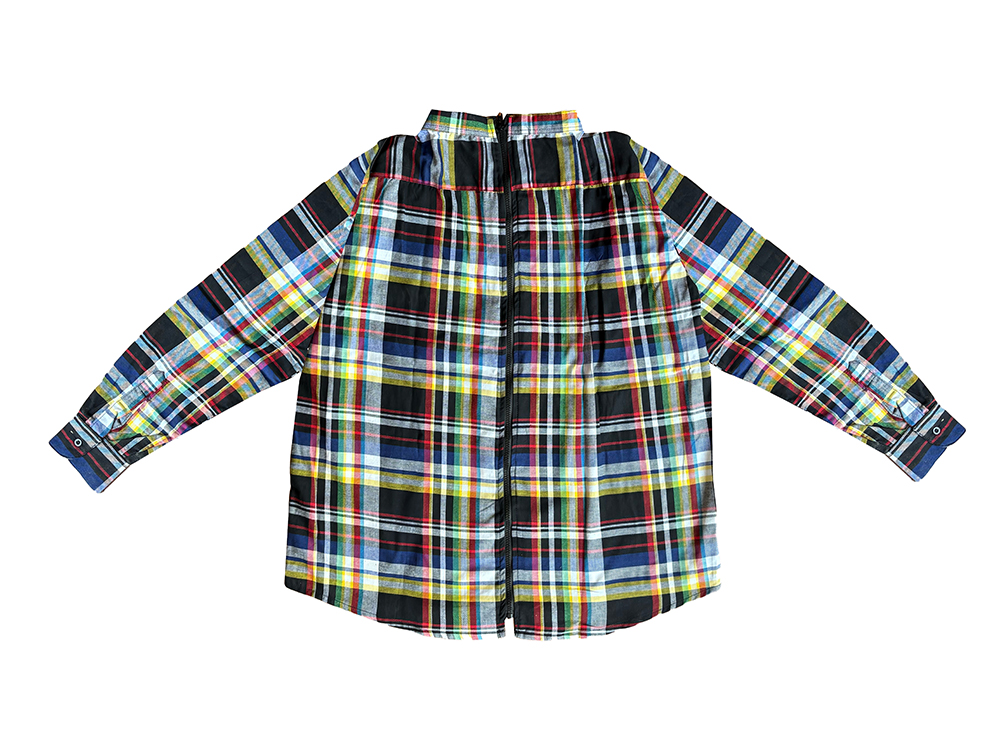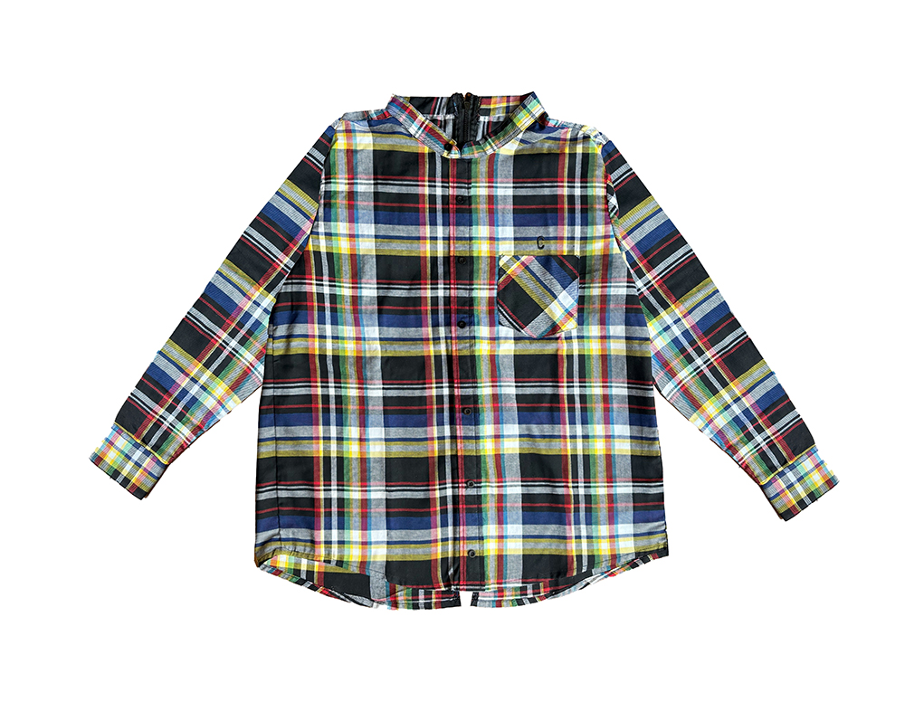 Camisa manga larga, cuello MAO y cremallera por la espalda.