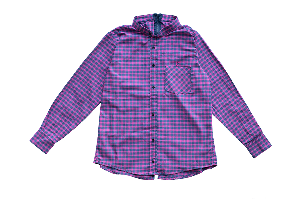Camisa manga larga, cuello MAO y cremallera por la espalda.
