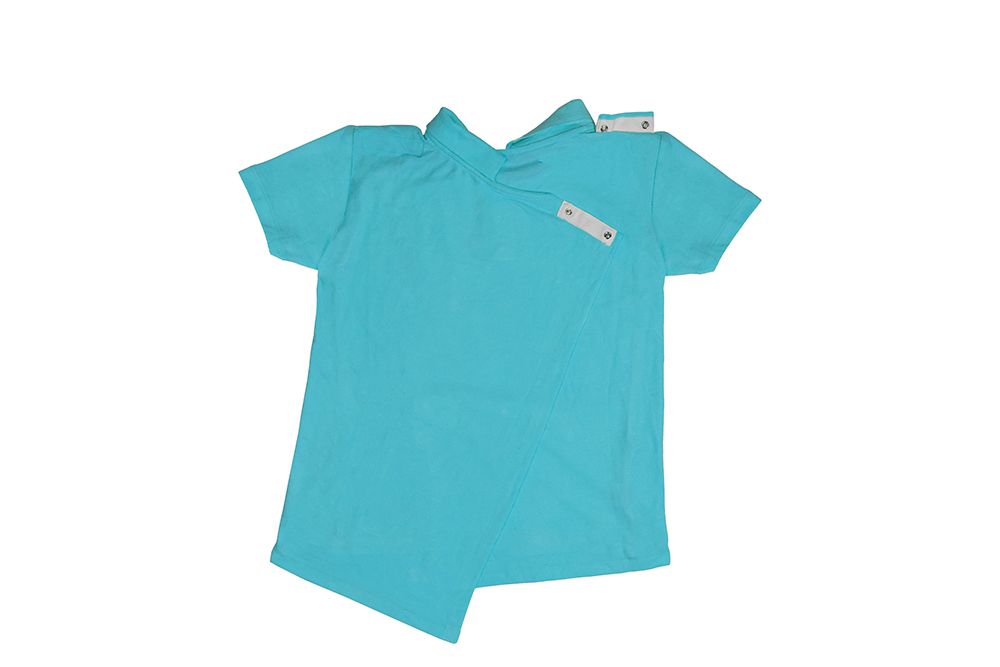 Blusa Polo de manga corta que se cierra por la espalda con broches a presión.