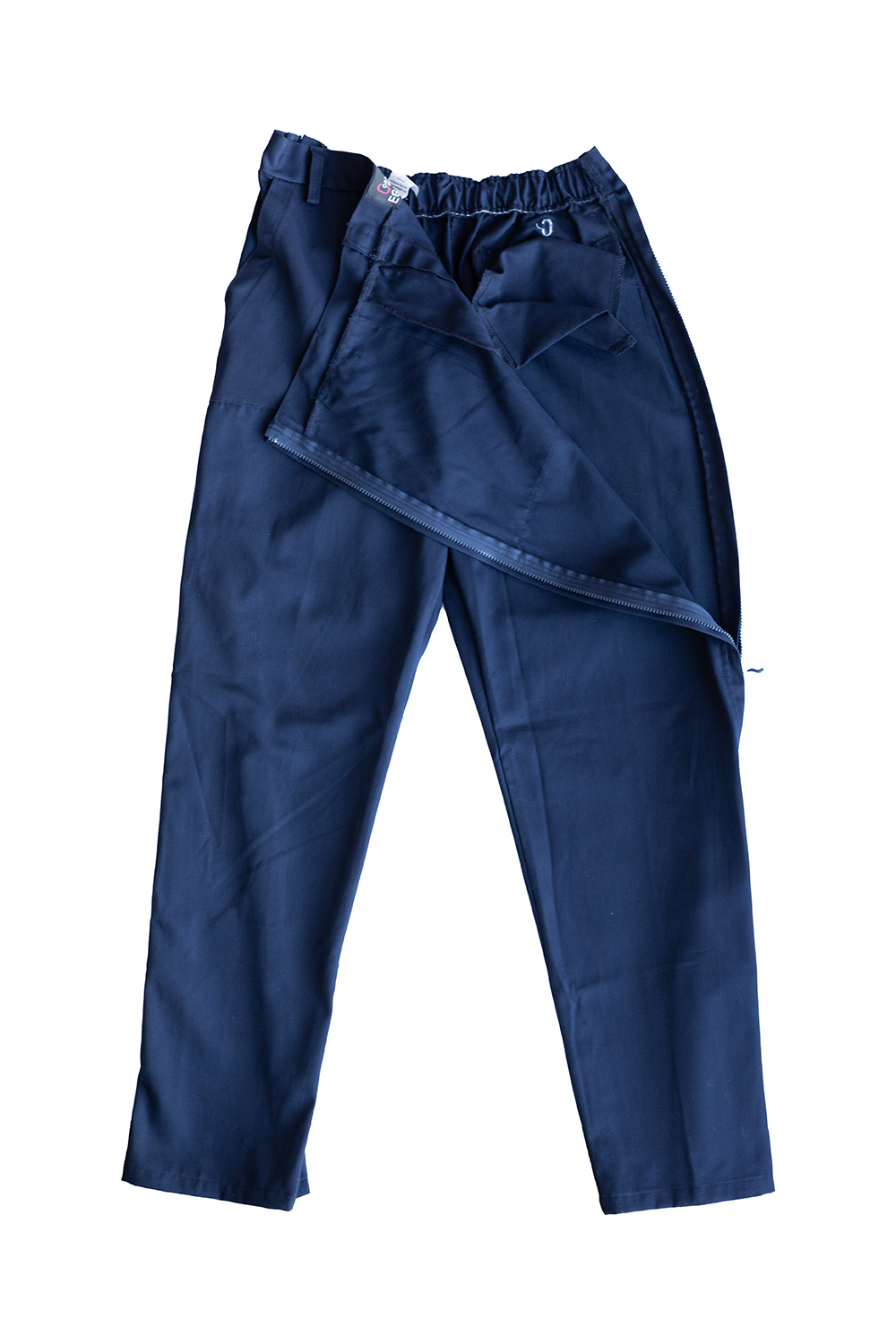 Pantalón con elástico en la cintura y laterales de ambas piernas con cierre magnético.
