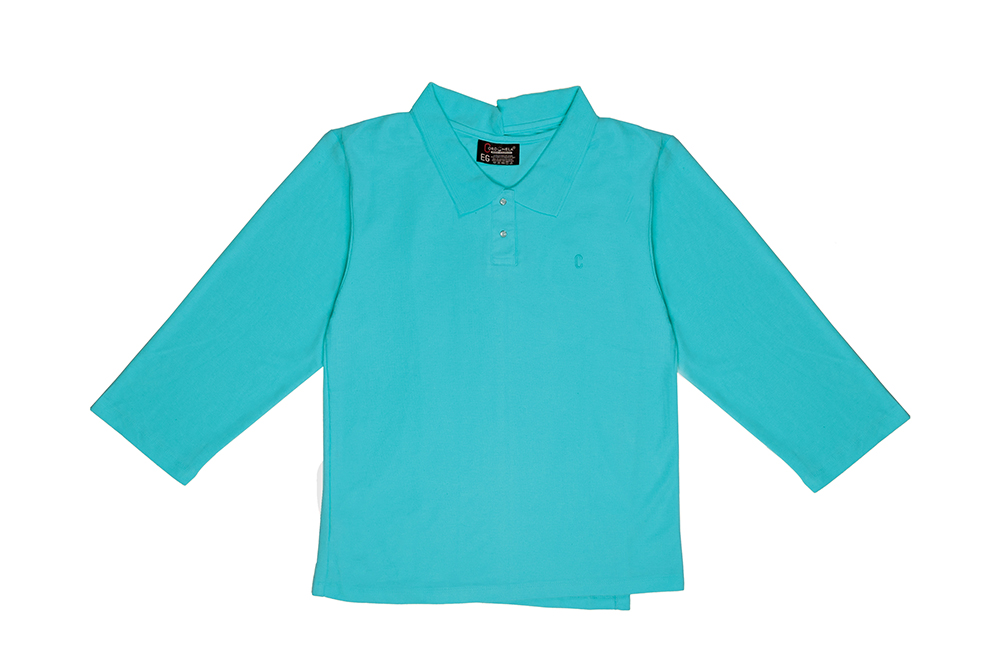 Blusa Polo de manga larga que se cierra por la espalda con broches a presión.