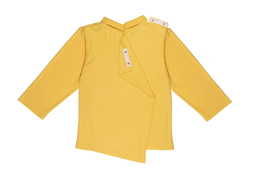 Blusa Polo de manga larga que se cierra por la espalda con broches a presión.