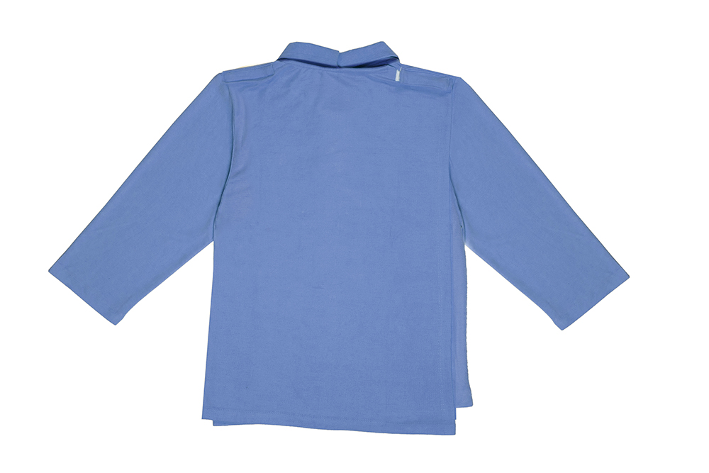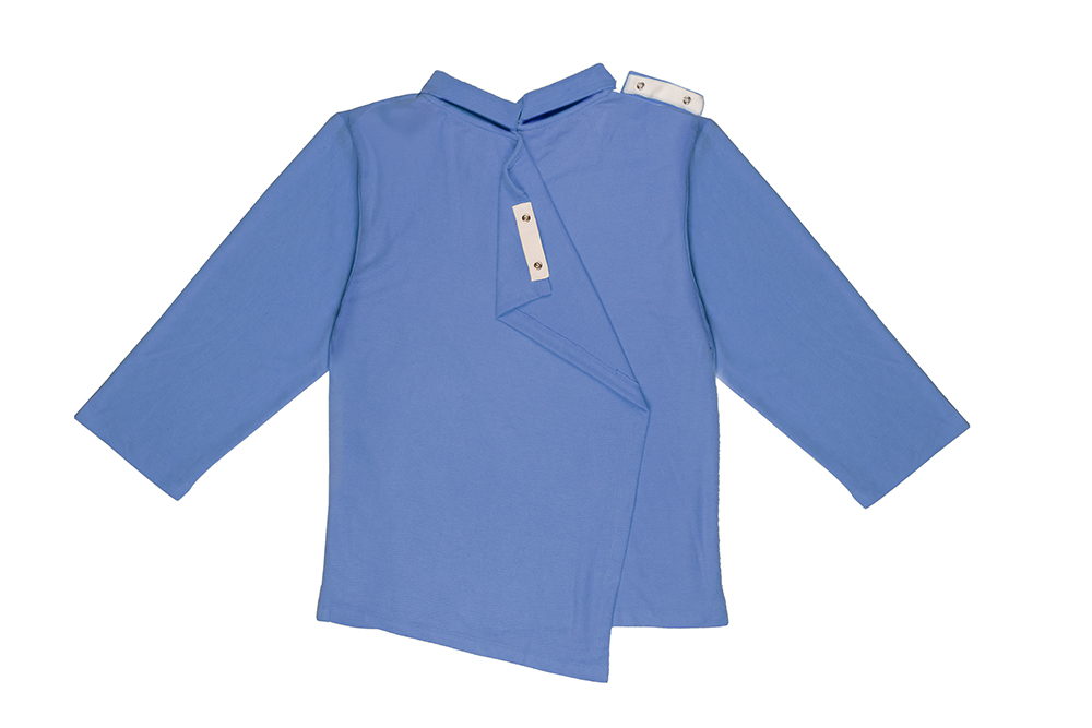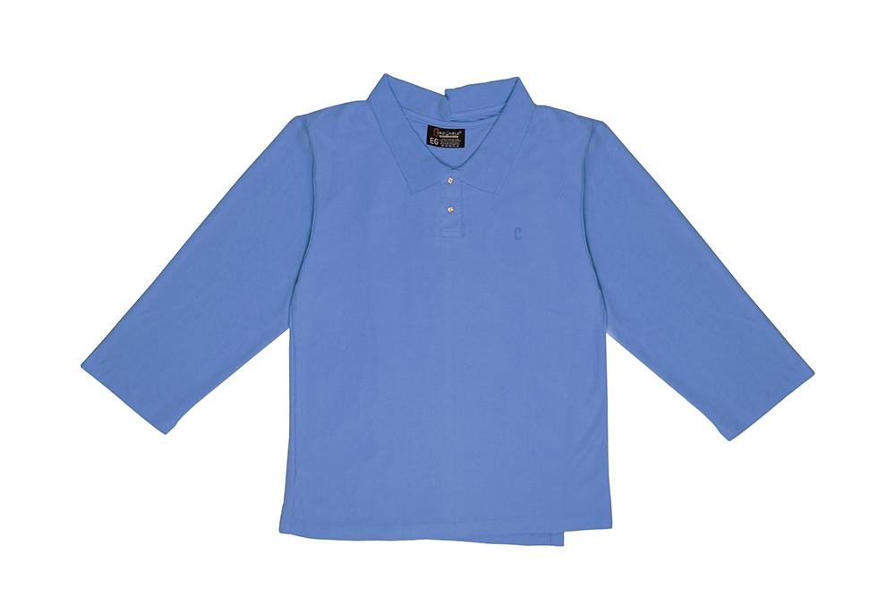 Blusa Polo de manga larga que se cierra por la espalda con broches a presión.