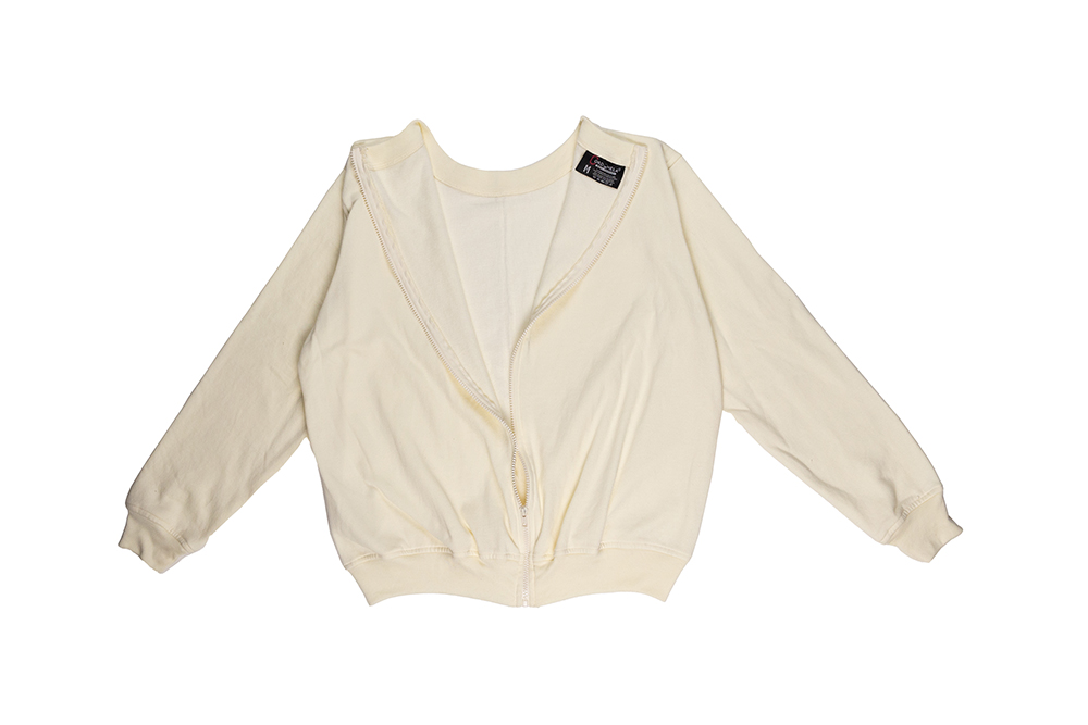 Sudadera de cuello redondo que se cierra por la espalda con cremallera.