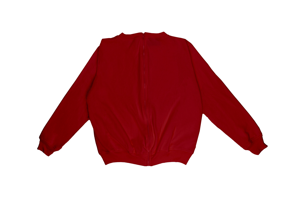 Sudadera de cuello redondo que se cierra por la espalda con cremallera.