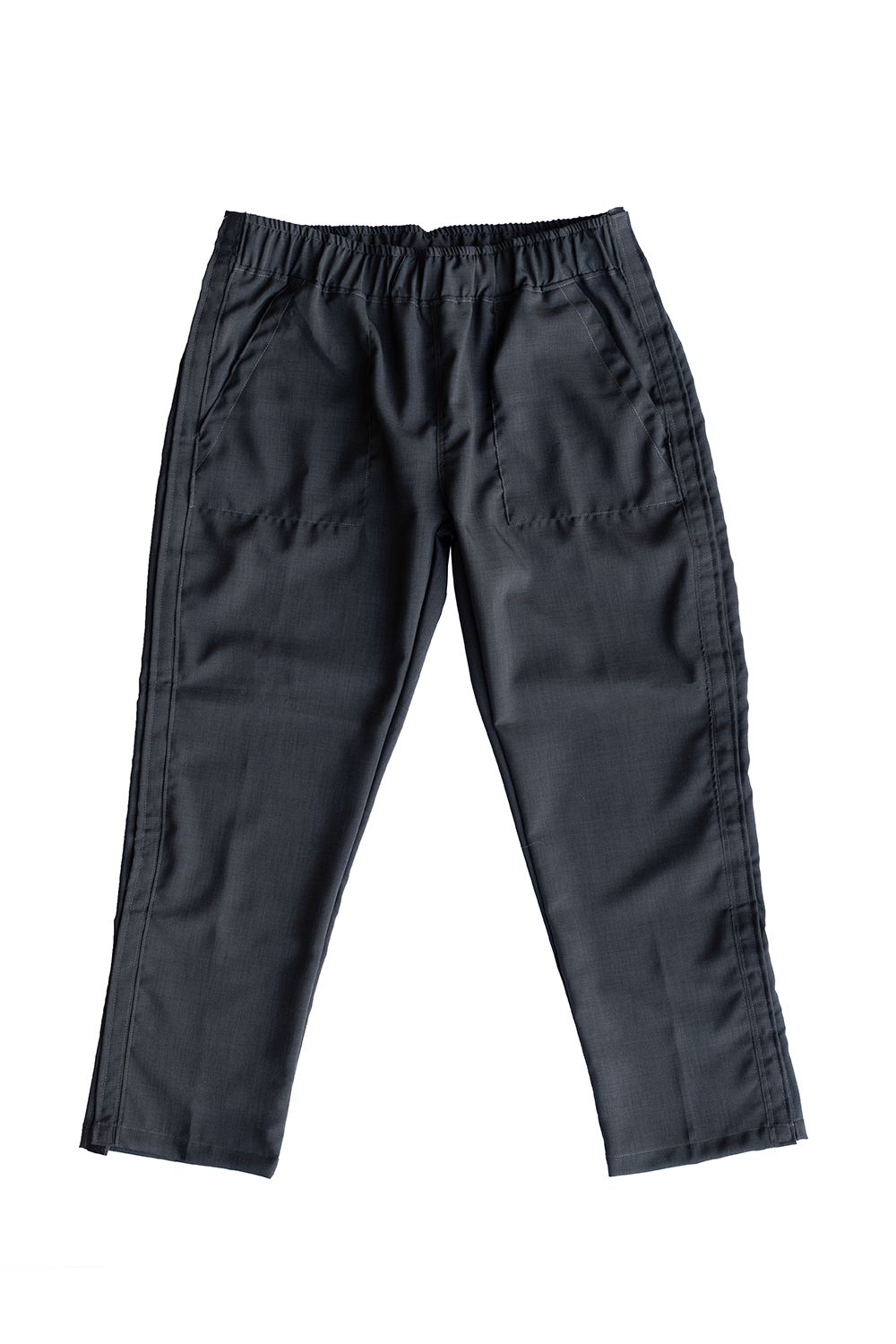 Pantalón clásico con elástico en la cintura y broches a presión en los laterales de ambas piernas.