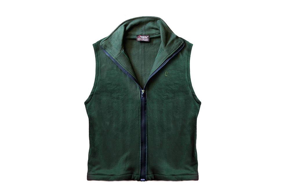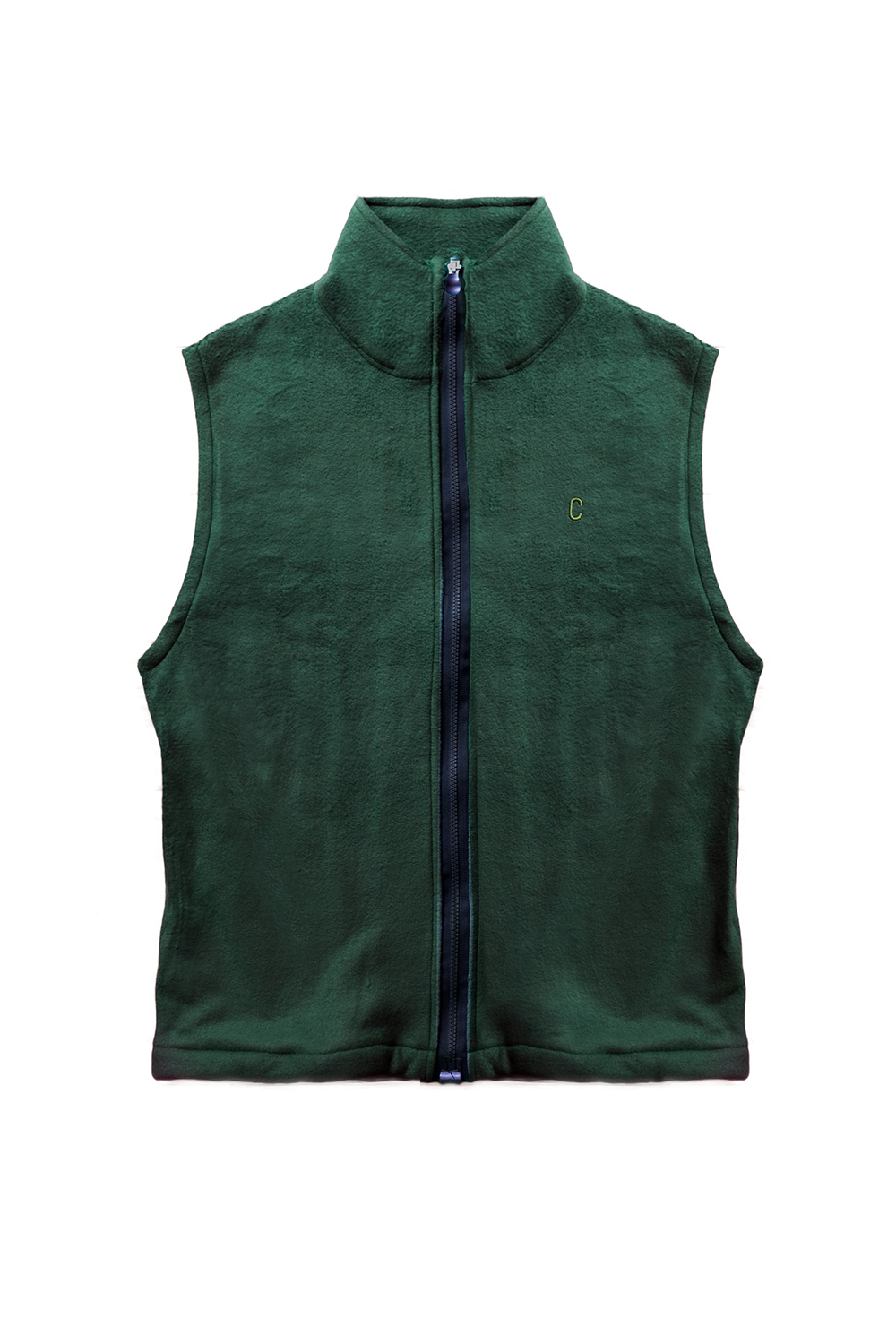 Chaleco de cuello alto, con cierre magnético color azul marino.