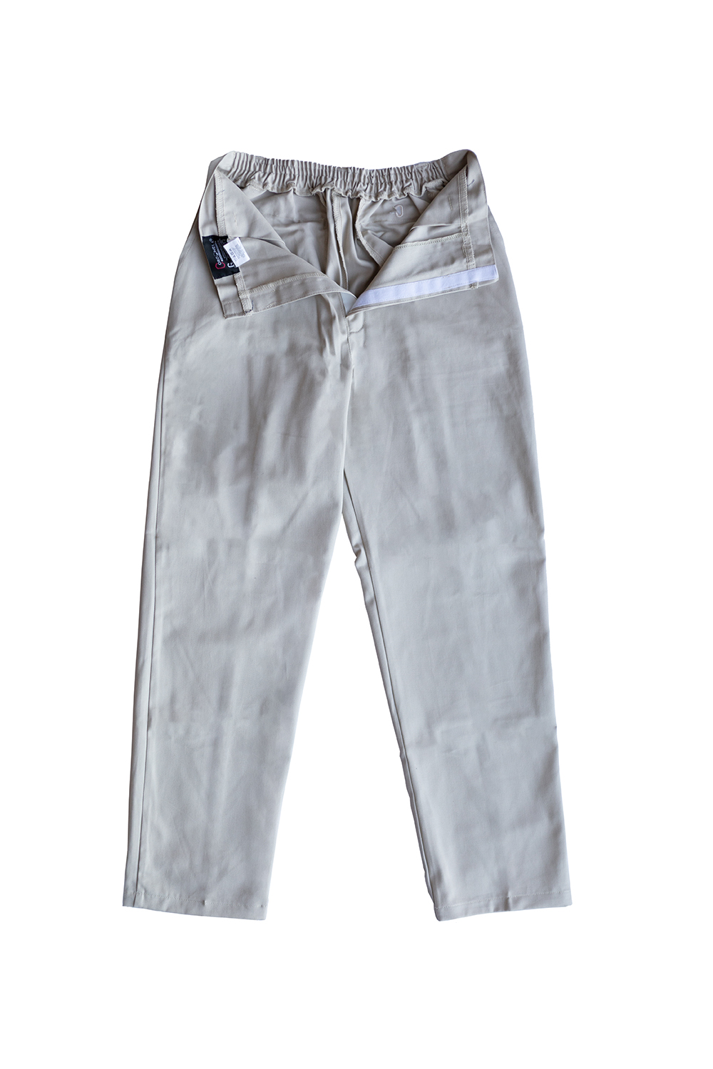 Pantalón clásico con elástico en la cintura y cierre de velcro.